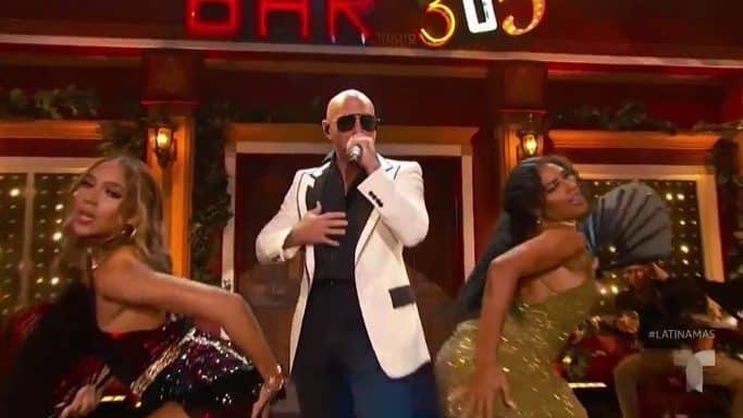 Pitbull subió al escenario en los Premios de la Música Latinoamericana de 2019 este jueves, y sacando de sus sillas a toda la audiencia presente en el Dolby Theatre de Hollywood mientras cantaba su nueva canción, «Me Quedaré Contigo». Entre los invitados especiales quienes colaboraron con Pitbull en el escenario estaban Lenier, El Micha y Ne-Yo, quienes cantaron en español por primera vez. Ne-Yo abrió la presentación frente a «Bar 305», antes de que El Micha entrara al escenario por la izquierda.