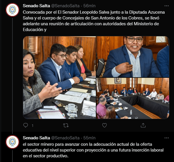 Para el senador, «nadie se va a oponer al cuidado del medio ambiente, todos queremos que se cuide. Esta ley esconde una trampa, crea un ente nacional, un ente regulador para manejar indirectamente el recurso, a los salares lo ponen como humedales pero no lo son«, criticó Salva. En la reunión habló con empresarios mineros con el objetivo de mejorar la vinculación educativa laboral de los estudiantes de la zona.