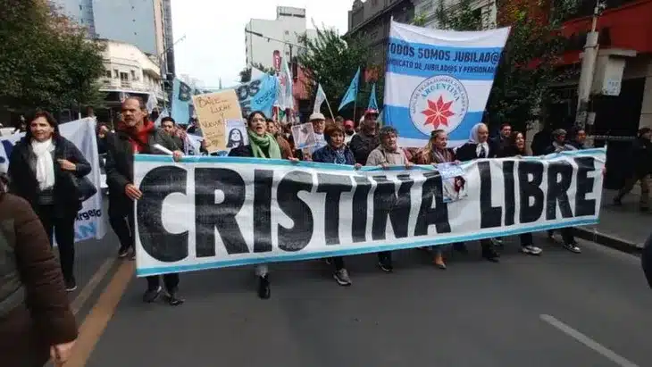 También participaron jubilados que, con pañuelos y cantos, exigieron la defensa de los derechos que, aseguran, Cristina les garantizó. Desde los derechos humanos, hablaron de un fallo judicial “injusto” y advirtieron sobre la erosión de la independencia judicial.